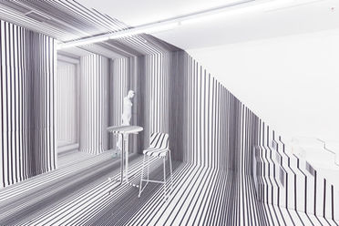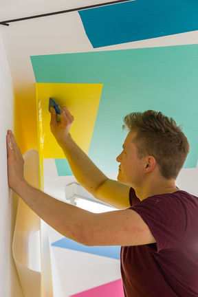 Enjoy our photos of the Tape Camouflage room at the Artcaden exhibition 2017 in Berlin. In cooperation with Xi-Design we were able to get creative in an empty store inside a mall. We taped interactive artworks – in four different areas the visitors could become part of the artworks relax in chairs, couches and beds, covered with tape. Fotos by Laurenz Bostedt