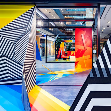 At Living Berlin, we created a comprehensive spatial installation under the title Inside the Box. The foundation of the project initially carried the working title Inside the Box. The starting point was a series of cubes, which we completely filled with tape. What had previously existed only as a two-dimensional surface was transformed here into a three-dimensional form. A flat idea thus became an immersive, walk-in spatial experience.