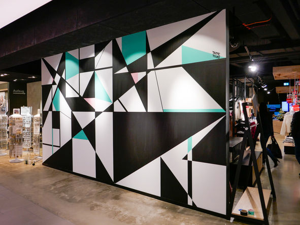 December 2018 we drove to the beautiful city of Minden. We performed a live taping session at the brand new Hinterhof 79 store. The concept of the artwork called „halb und halb“ (engl. „half and half“) is to create squares and triangles and divide them in two halves with further lines and geometrical forms. To give it a clean modern look we topped it all up with mint blue and light pink.